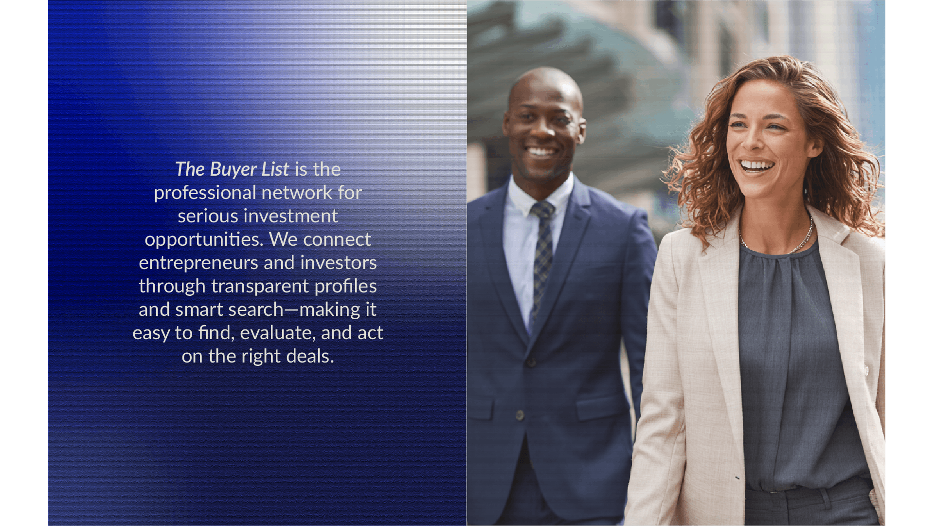 The Buyer List entered a marketplace where investment platforms either felt impenetrably corporate or unreliably casual. We developed a brand identity that stakes out a distinct position—professionally rigorous yet genuinely welcoming. The visual system leverages symbolic elements of growth, transparent listing architecture, and a color story that moves from grounded earth tones to confident blues. The result positions The Buyer List as the intelligent choice for serious professionals who value both efficiency and authenticity in deal-making.
